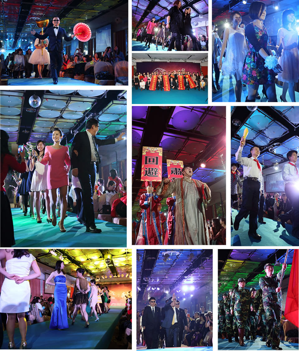 隨后踏上星光大道的二十余個部門,逐一閃亮登場,個個創(chuàng)意無限。通過他們的精心裝扮和表演,能感受到滿滿的祝福撲面而來——小清新和男女搭配的國際電學部、舉著元寶扮成福仔旺仔高喊“馬上有錢”的財務部、在高大帥帶領(lǐng)下由小伙伴和女漢子們組成的流程部、帶著化學元素符號入場的化學部、乘坐集佳年會專列高舉“集賢納士登絕頂,佳期尤夢獵蒼鷹,日逐風雨凌云志,本自策馬笑傲行”壯語的日本部、還有包公帶著眾衙役趕來的訴訟部……在璀璨絢麗的燈光下,他們神采飛揚,亦或穿越經(jīng)典、賣萌扮嫩,亦或演繹紅色風暴,性感來襲,將最具個性的風采一覽無余地展現(xiàn)在集佳星光大道上。