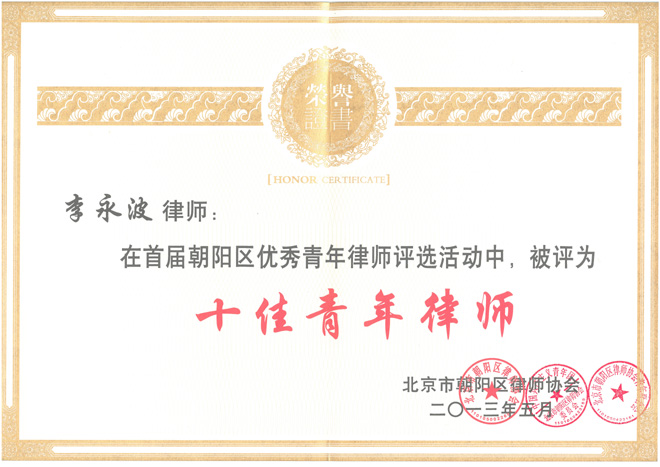 近日,首屆朝陽區(qū)優(yōu)秀青年律師表彰大會(huì)在北京國際會(huì)議中心成功舉辦。大會(huì)為首屆朝陽區(qū)100名優(yōu)秀青年律師頒發(fā)了獎(jiǎng)牌,北京市集佳律師事務(wù)所李永波律師被評(píng)為“十佳青年律師”,張亞洲律師、孔繁文律師獲評(píng)“先鋒青年律師”。
