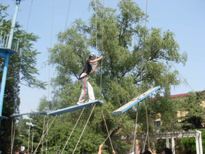 第二天一早,挑戰正式開始:動感顛球、驛站傳輸、移動高爾夫、不倒森林、高空斷橋、合力過橋……當培訓師將一個個項目公布后,大家發現,只有認真分析隊員優勢,合理分配資源,達到默契的協作和配合,而且中間環節沒有大的失誤和錯誤,才能完成任務。炎炎烈日下,雖然隊員當中有的身寬體胖,有的恐高,有的身體協調能力差,但沒有一個被困難嚇倒,沒有一人被落下,“不拋棄、不放棄”成為每個隊員心中的信念。在隊長的帶領下,大家克服重重困難,團結協作,互相鼓勵,全部完成了挑戰任務,而且有的團隊還通過完美的配合創造了破紀錄的佳績。
