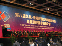 9月2日,“第八屆北京香港經(jīng)濟合作研討洽談會暨奧運經(jīng)濟市場推介會”在香港會議展覽中心開幕,中共中央政治局委員、北京市委書記劉淇,全國政協(xié)副主席霍英東,香港特區(qū)行政長官董建華,中央政府駐港聯(lián)絡(luò)辦公室主任高祀仁等出席了開幕式。為期兩天的京港洽談會將緊密圍繞北京籌辦奧運會和落實CEPA帶來的巨大商機,向各界推介項目、促進合作。