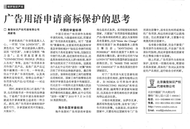 《國際商報》:廣告用語申請商標保護的思考