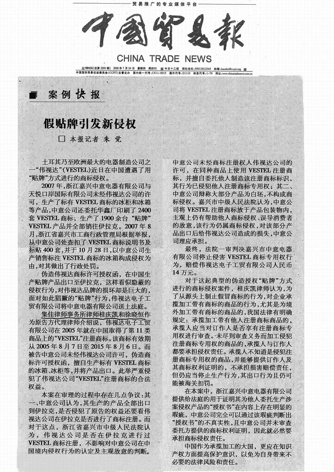 《中國貿(mào)易報》:假貼牌引發(fā)新侵權(quán)