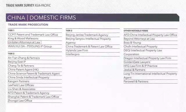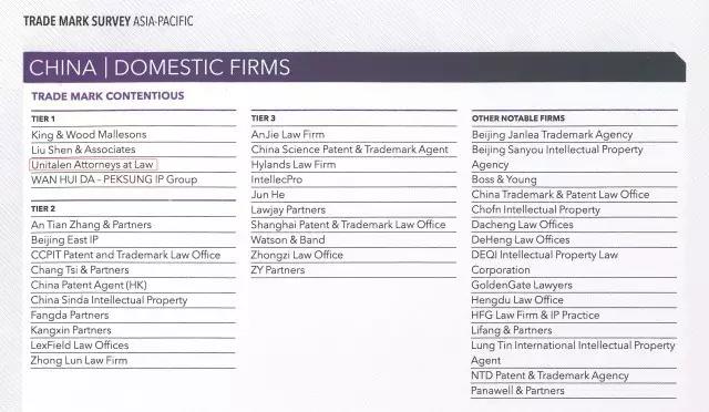 日前,全球權(quán)威知識產(chǎn)權(quán)雜志Managing Intellectual Property (MIP)公布“2017知識產(chǎn)權(quán)之星” 商標(biāo)業(yè)務(wù)排行榜,集佳在“商標(biāo)申請”和“商標(biāo)訴訟”排名中居中國區(qū)第一梯隊(Tier 1)。