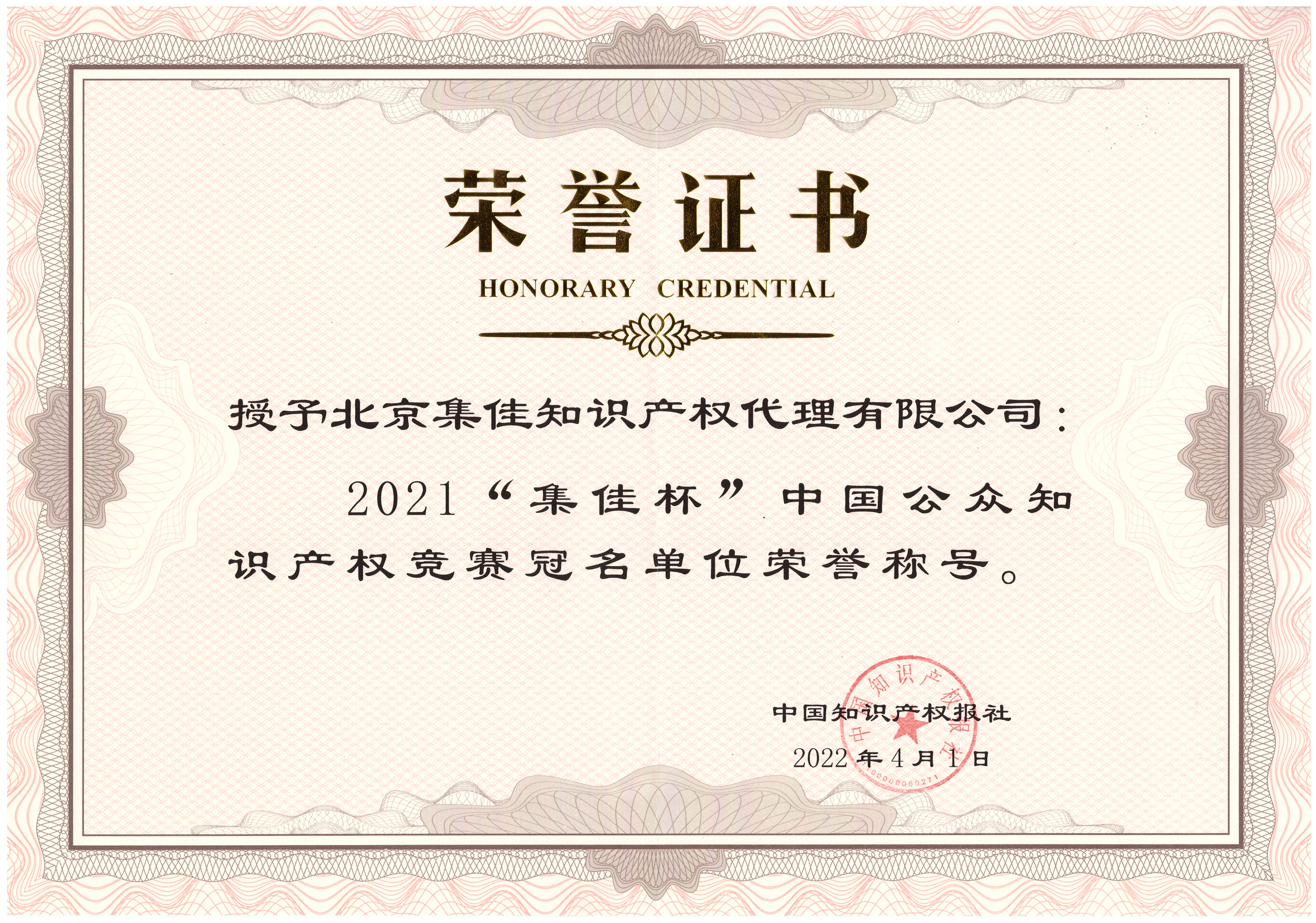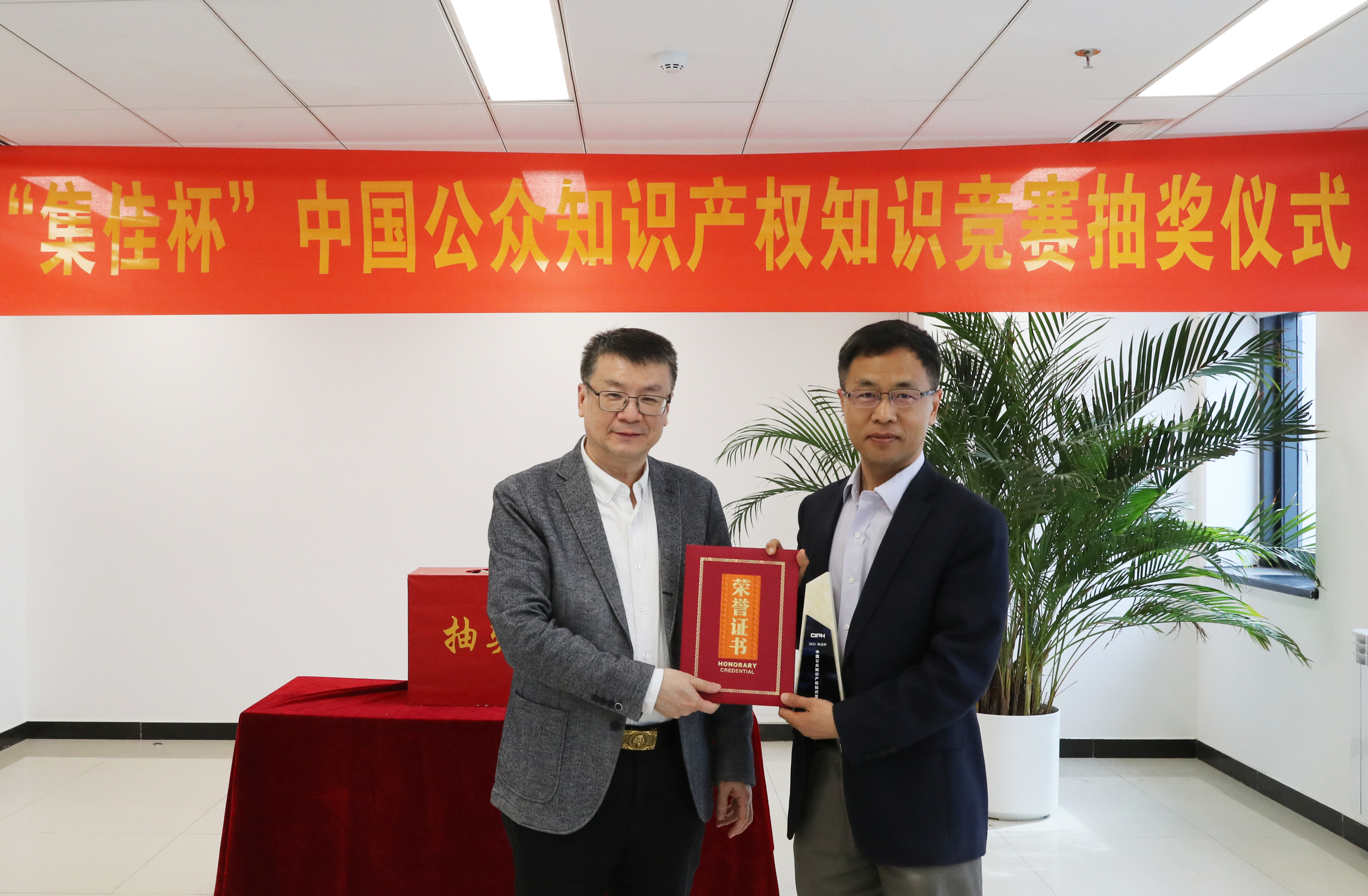 2022年4月1日下午,由中國知識產(chǎn)權(quán)報(bào)社主辦、北京集佳知識產(chǎn)權(quán)代理有限公司冠名支持的2021“集佳杯”中國公眾知識產(chǎn)權(quán)知識競賽抽獎(jiǎng)儀式在北京舉行,集佳高級合伙人、常務(wù)副所長李德山博士應(yīng)邀出席抽獎(jiǎng)儀式,集佳推進(jìn)部部長徐亞金陪同參加活動(dòng)。