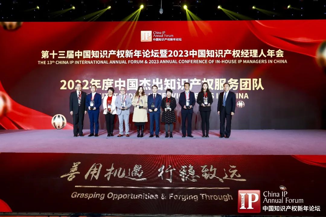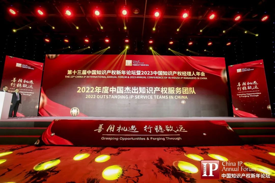 2月11日,“第十三屆中國知識產權新年論壇暨2023中國知識產權經理人年會”及頒獎盛典在北京盛大開幕。集佳知識產權憑借精湛的業務能力、卓越的專業實力及出眾的團隊凝聚力蟬聯2022年度“中國杰出知識產權服務團隊”獎項。合伙人王秀青女士代表集佳出席盛會并領獎。