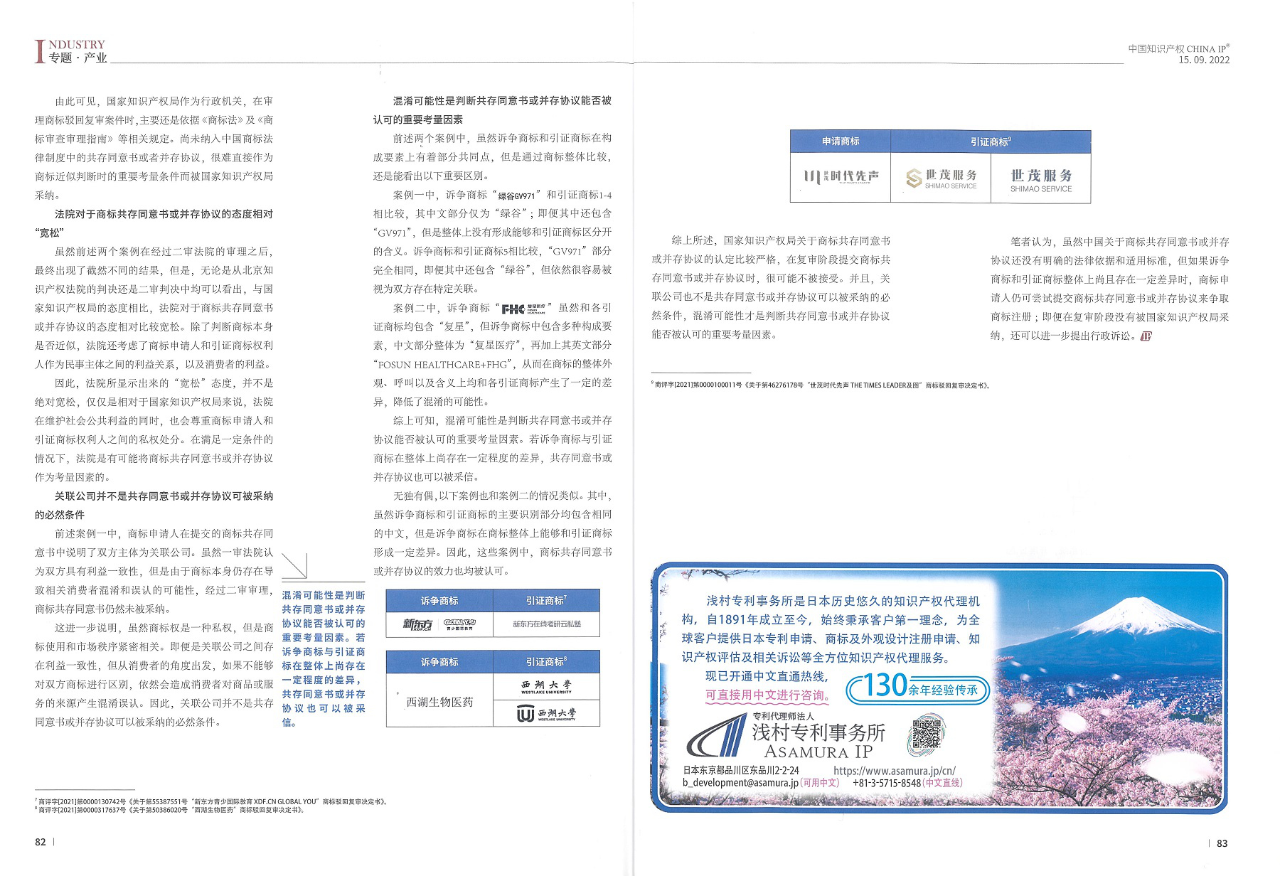 集佳文章《淺析商標注冊申請時的共存同意書的適用》在《中國知識產權》發表