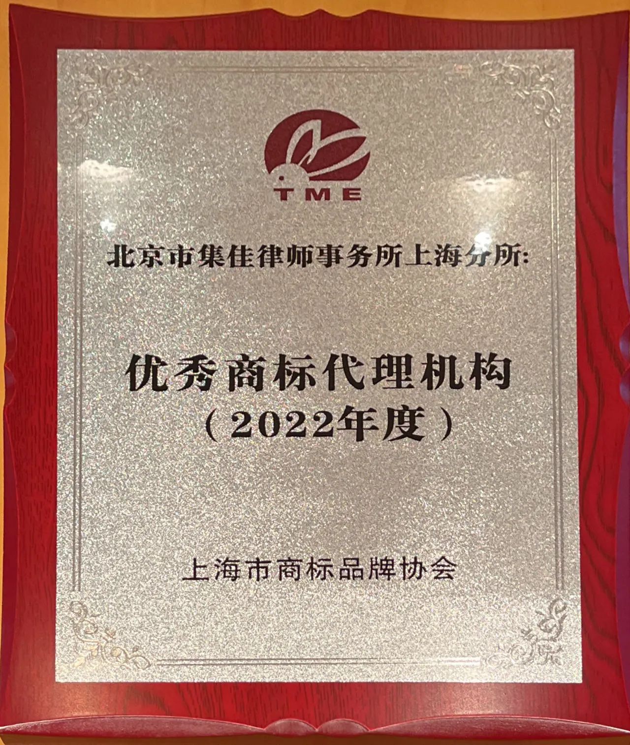 集佳上海分所被評為2022年度“上海市優秀商標代理機構”