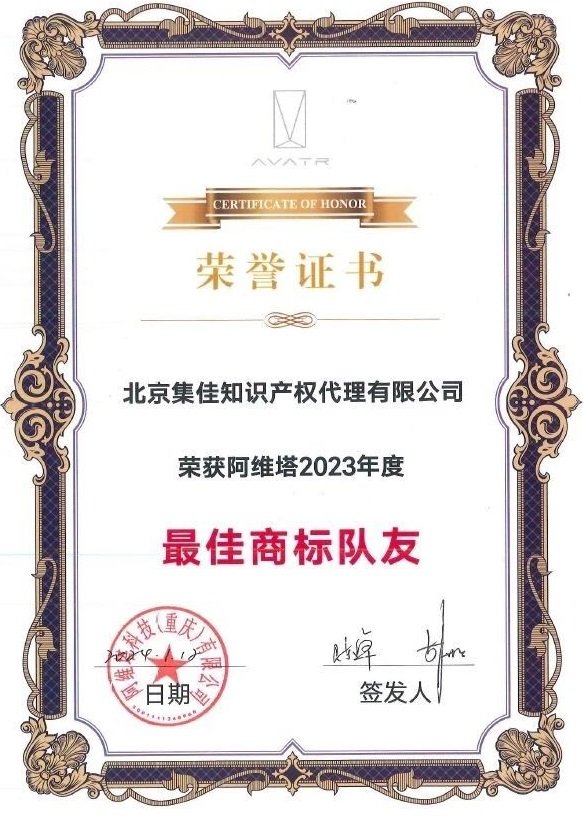 近日,集佳優(yōu)質服務再次喜獲客戶點贊——阿維塔科技(重慶)有限公司(以下簡稱“阿維塔”)授予集佳2023年度“最佳商標隊友”榮譽稱號。