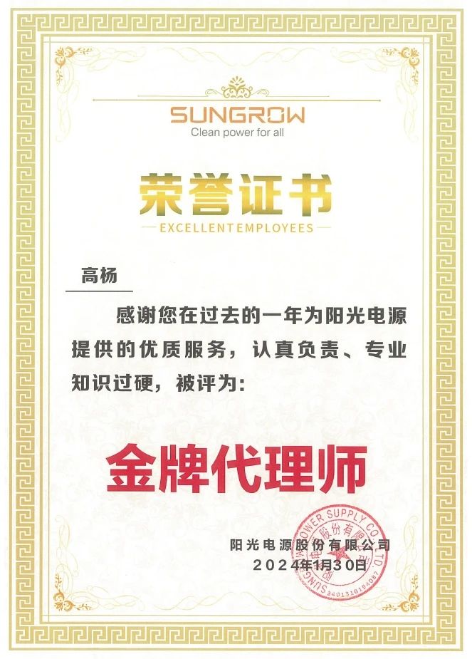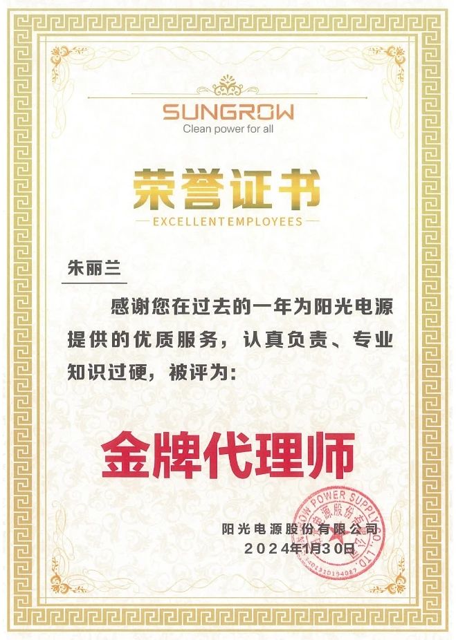 新春伊始,集佳再獲喜訊——陽光電源股份有限公司授予集佳“優秀合作伙伴”榮譽稱號。