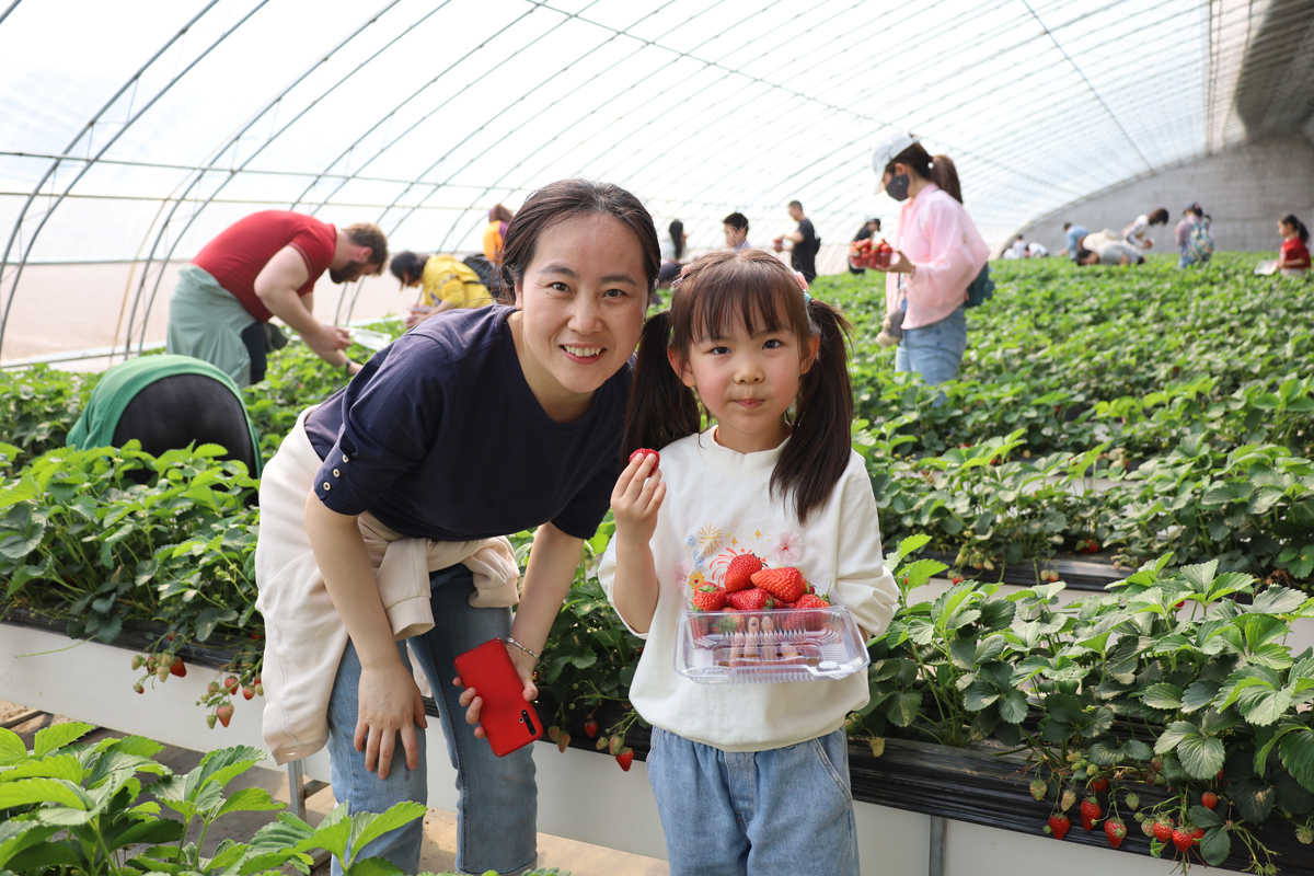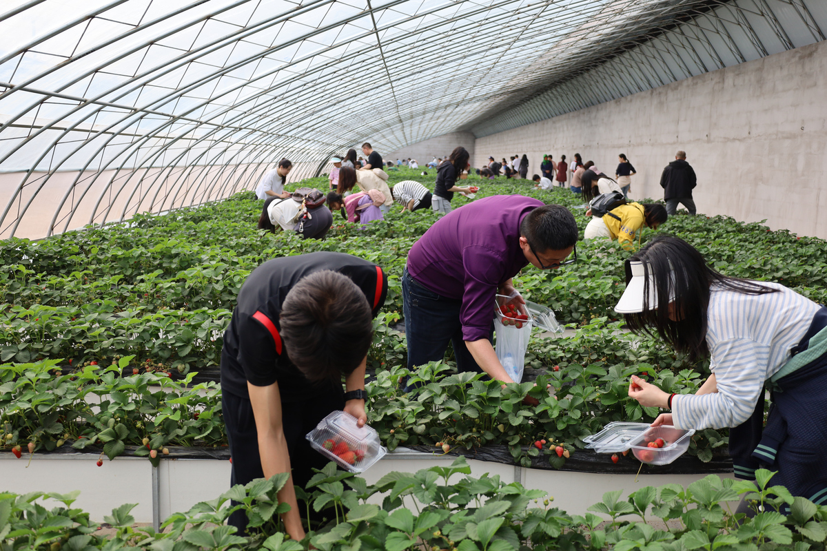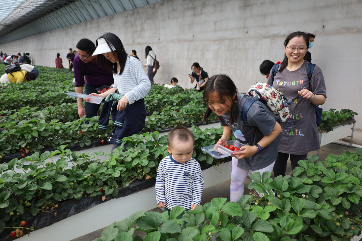 一顆顆鮮艷欲滴的草莓、小番茄點綴在翠綠的枝蔓間,