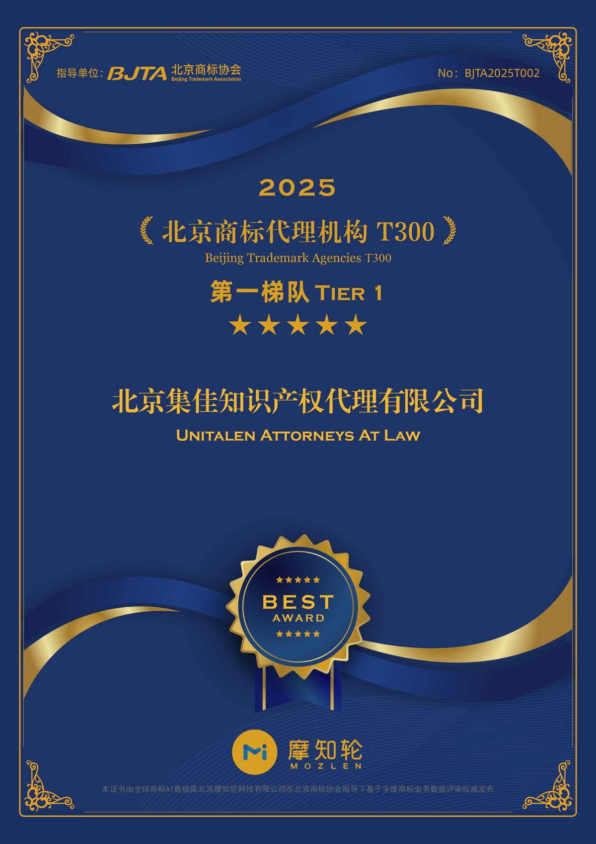 集佳榮登“2025年度北京商標代理機構T300”榜單第一梯隊